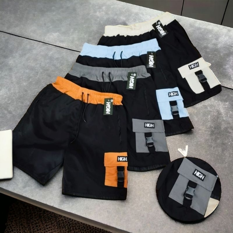 kit com 4 Bermudas cargo 3 bolsos Tactel com elastano bolso de telinha com zíper