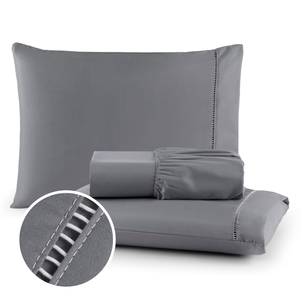 Kit Jogo de Lençol 4 Peças Ponto Palito Percal 400 Fios Toque Macio Lençol Solteiro/ Casal Padrão/Queen Size/ King Size