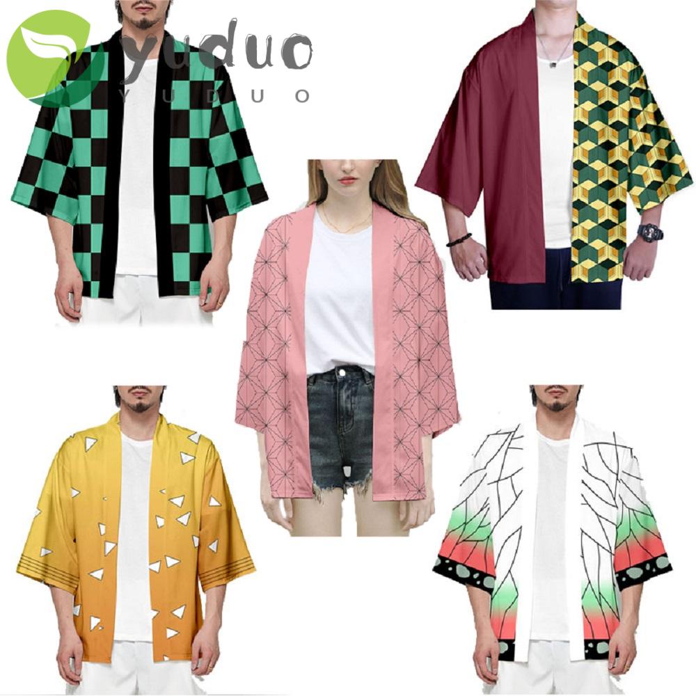 YUDUO Tomioka Giyuu Halloween Kamado Tanjiro Kamado Nezuko Demon Slayer Kimono Anime Cosplay/Multicolor