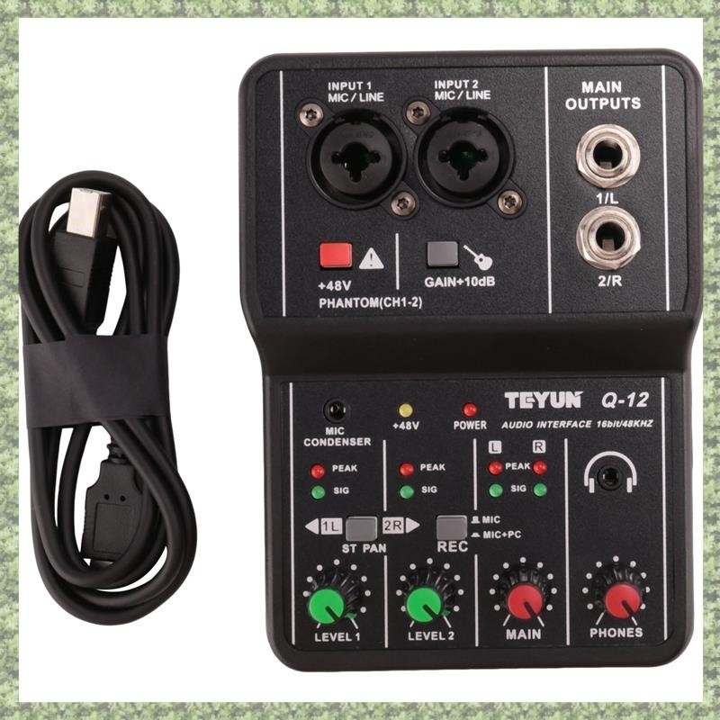 (P X C W) TEYUN Q12 Placa De Som De Gravação Para Computador 16Bit/48KHZ USB Drive-Free 48V