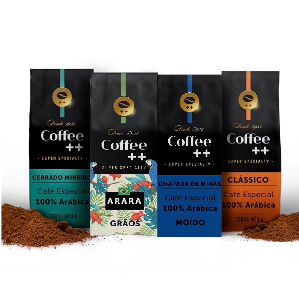 Kit 4 Pacotes Café Especial Em Grãos Coffee Mais Classico, Arara, Sul de Minas e Cerrado