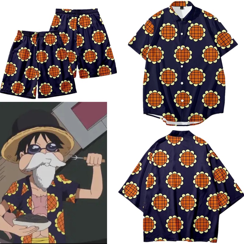 Anime Monkey D Luffy Cosplay Traje De Fantasia De Manga Curta Camiseta Homens Sunflower Casual Summer Beach