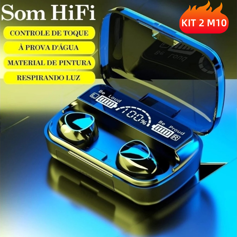 KIT Fone M10 F9 Fone De Ouvido Sem Fio Tws Grande-Bateria Bluetooth V5.3 HX