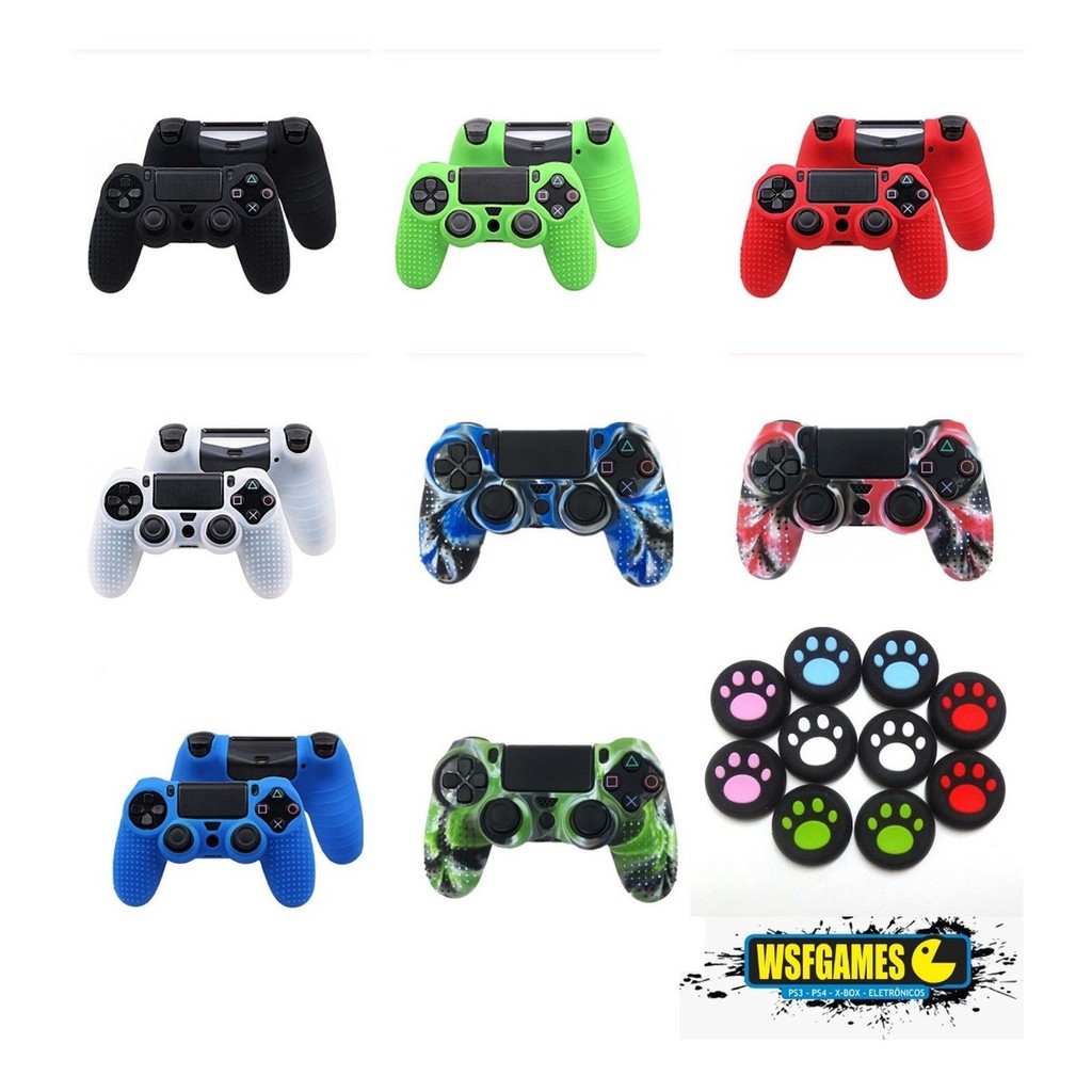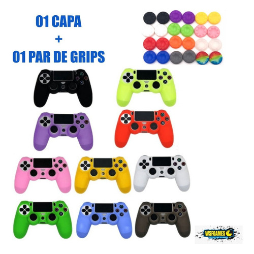 Capa De Silicone Controle Ps4 Dualshock4 + 01 Par De Grips GRÁTIS