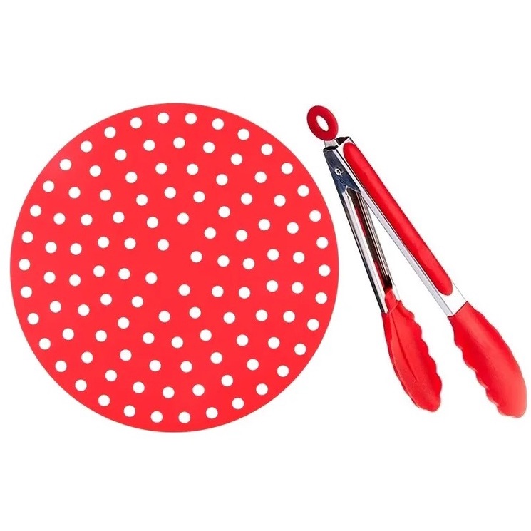 Kit 01 Protetor / Tapete de Silicone Fritadeira Air fryer Universal 19cm + 01 Pegador pinça 25 cm