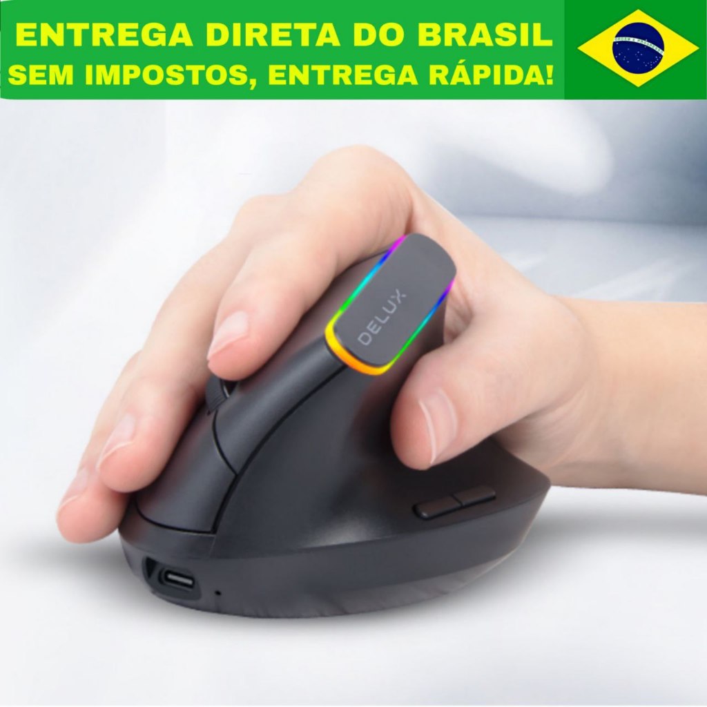 Mouse Ergônomico Delux M618DB RGB Vertical Sem Fio recarregável 6 Botões Bluetooth 4.0