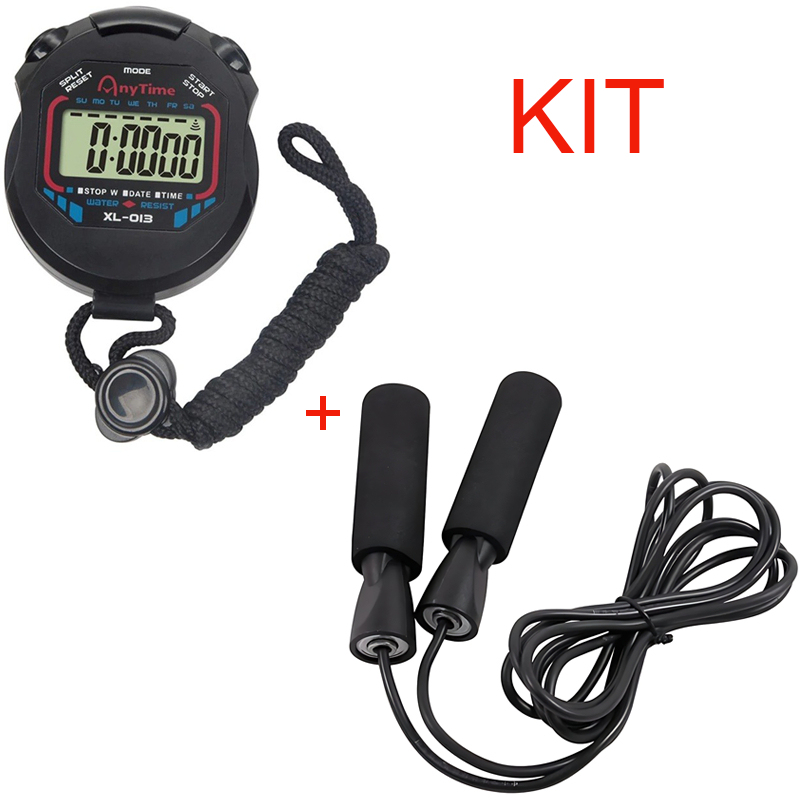 Kit 2 Peças Corda de Pular com Cronômetro Progressivo De Mão Digital Alarme Hora Treinamento Esporte