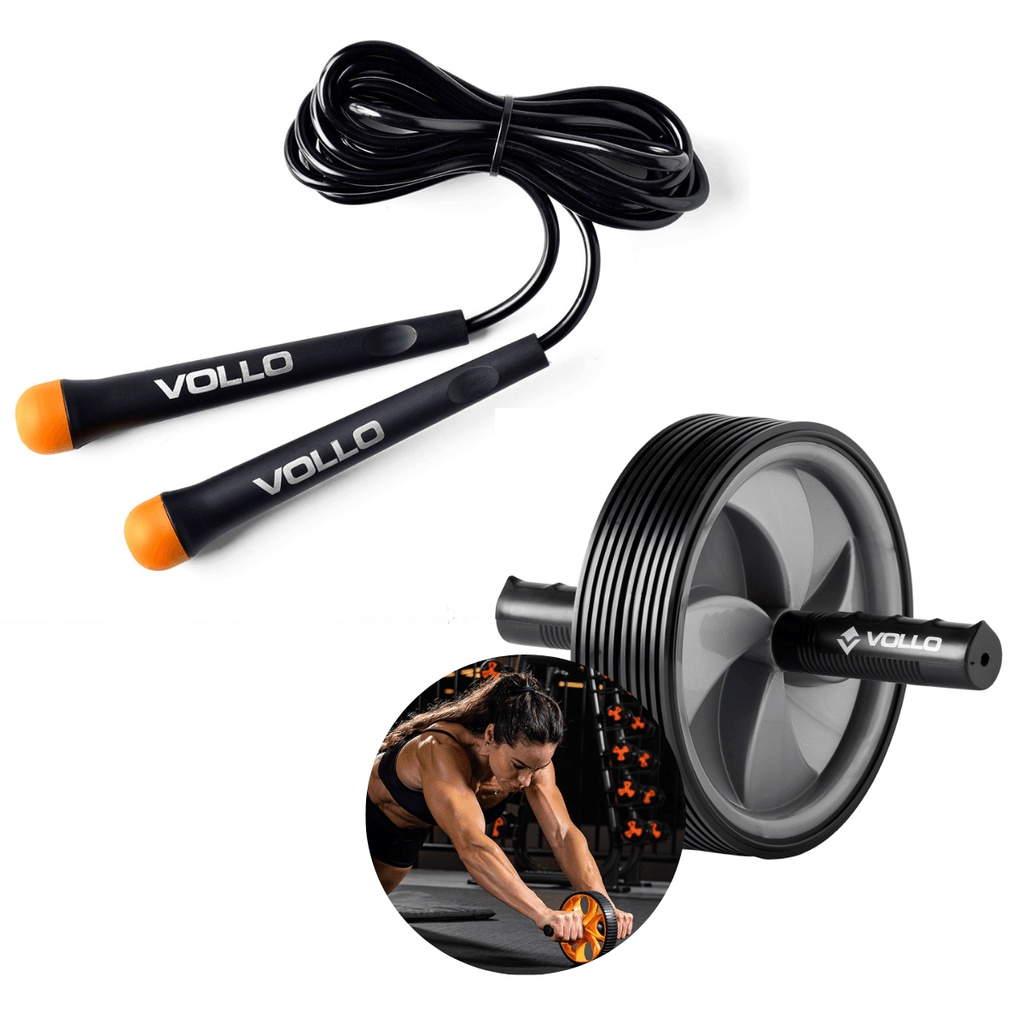 Kit Corda de Pular + Roda de Treino Abdominal Crossfit Ginastica Academia Em Casa Vollo Emagrecimento Fitness