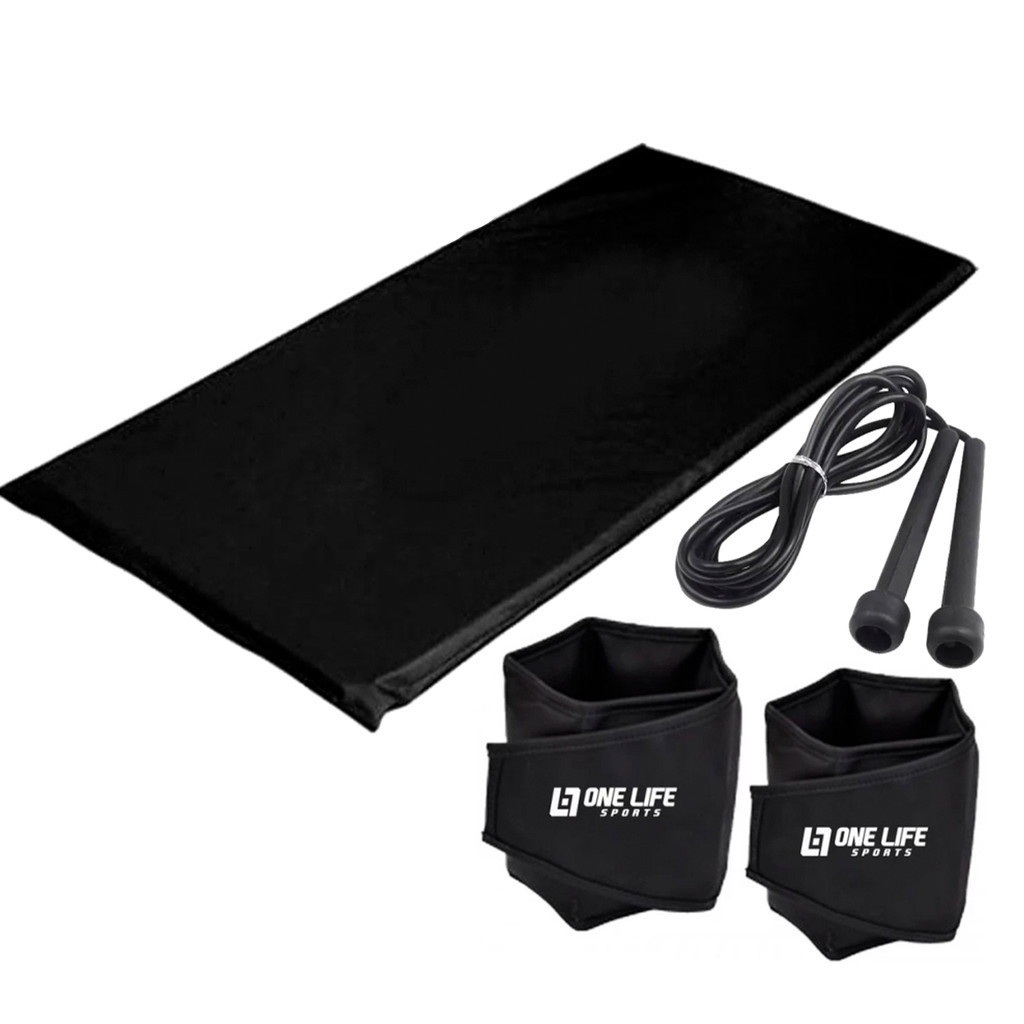 Kit Colchonete Academia / Yoga / Fitness + Par 2 kg de Caneleira / Tornozeleira + CORDA DE PULAR