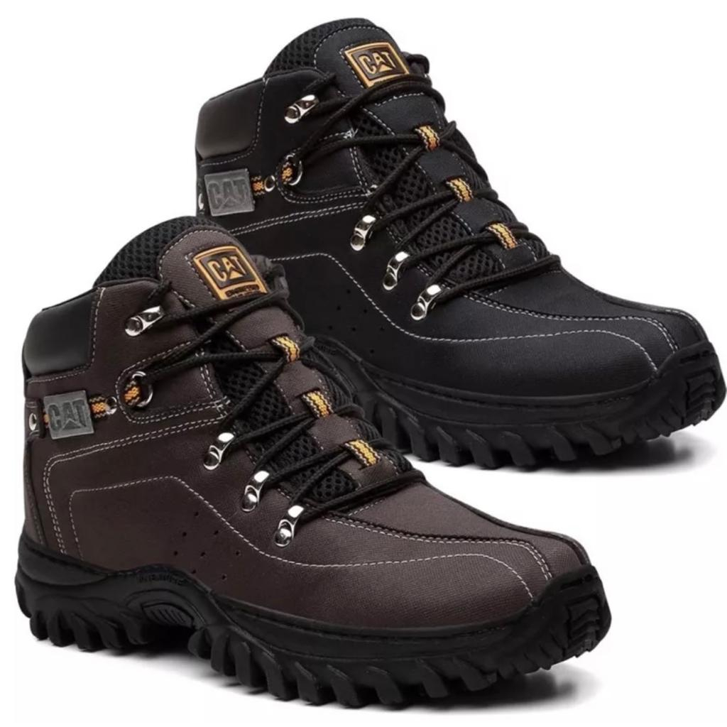 Kit 2 Pares De Bota Masculina Caterpillar Adventure Moderna Macia Costurada + Palmilha Gel