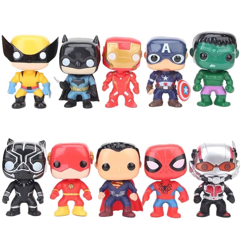 Boneco estilo Funko pop dos vingadores e da liga da justiça mulher maravilha, Aquaman, Batman, Superman, Pantera Negra, Capitão América, Homem-aranha, The Flash, Thor, Hulk, Homem de Ferro, Iron Man e Spider Man
