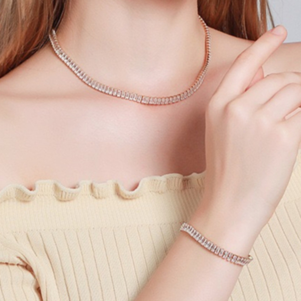 KIT Conjunto Riviera Colar e Pulseira Feminina Zircônia Folheado a Ouro 18K Acessórios Femininos Choker
