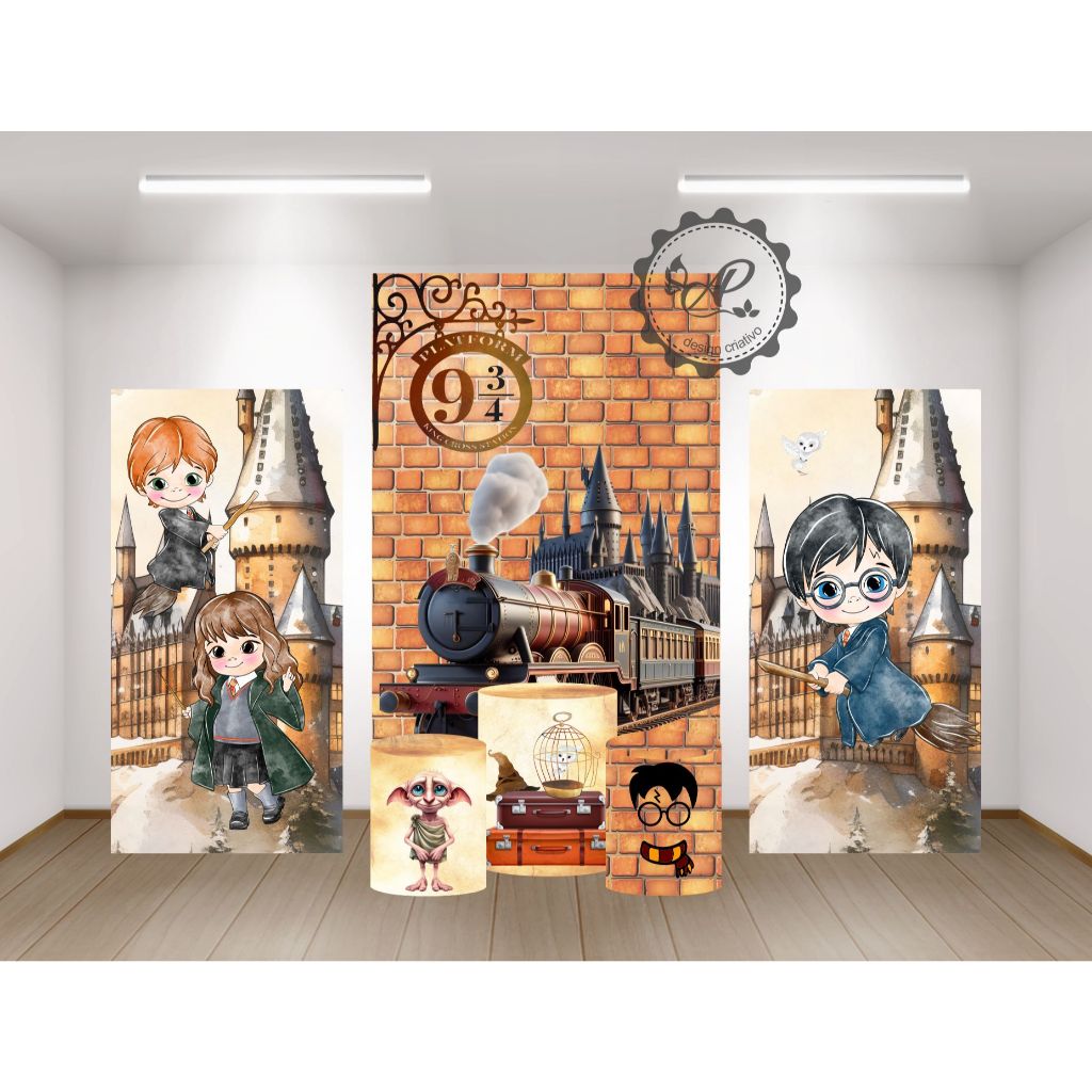 SUPER KIT PAINEL DE FESTA HARRY POTTER AQUARELADO EM TECIDO SUBLIMADO
