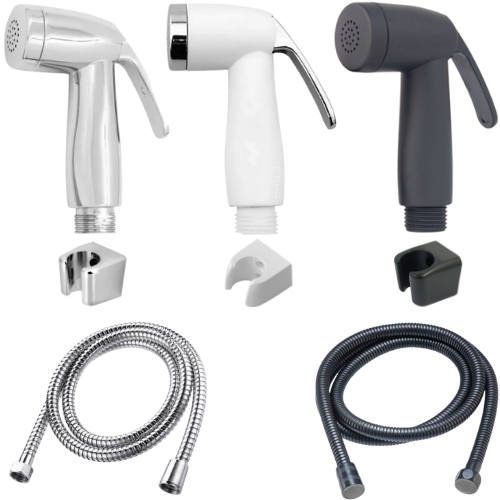 Kit Ducha Higiênica Cromado Branco Ou Preto Para Banheiro Pet Shop (Gatilho Chuveirinho Top Com Suporte De Parede + Engate Mangueira Flexível Aço Inox)
