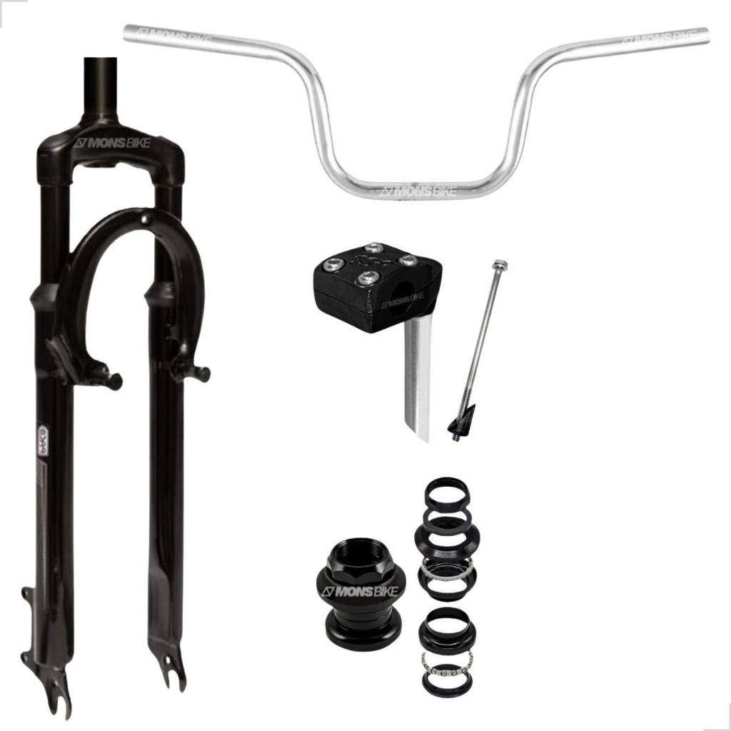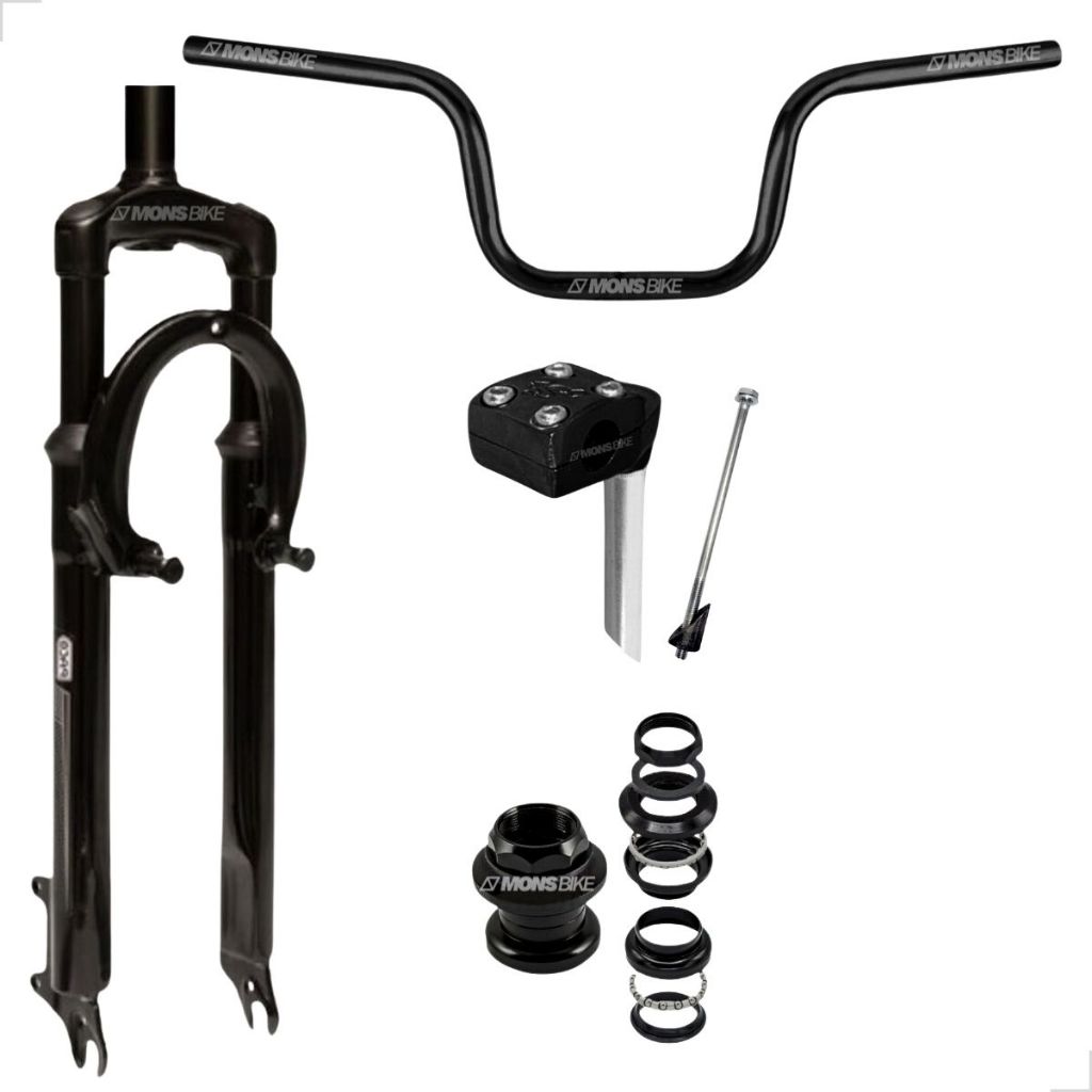 Suspensão Bike Aro 26 Standard + Caixa de Direção + Guidão Tipo Moto Alto + Mesa