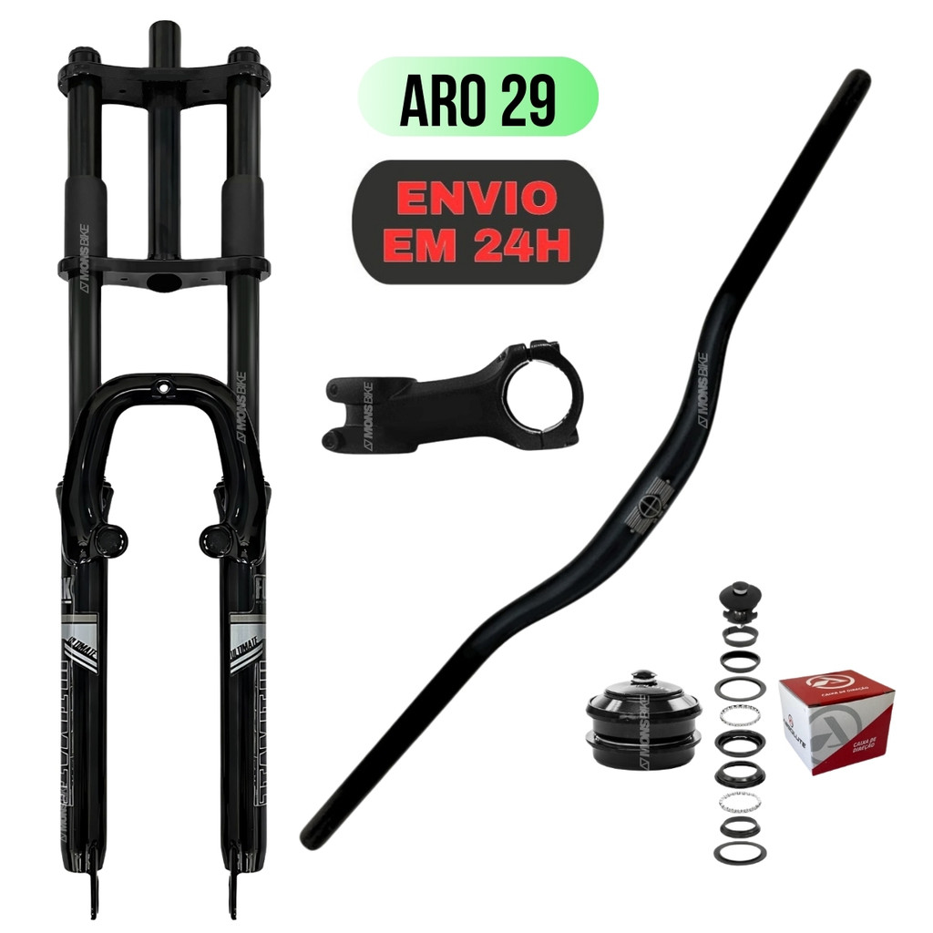 Garfo Suspensão Bike Aro 29 2 Andar + Caixa Direção Ahead + Guidão + Mesa Suporte