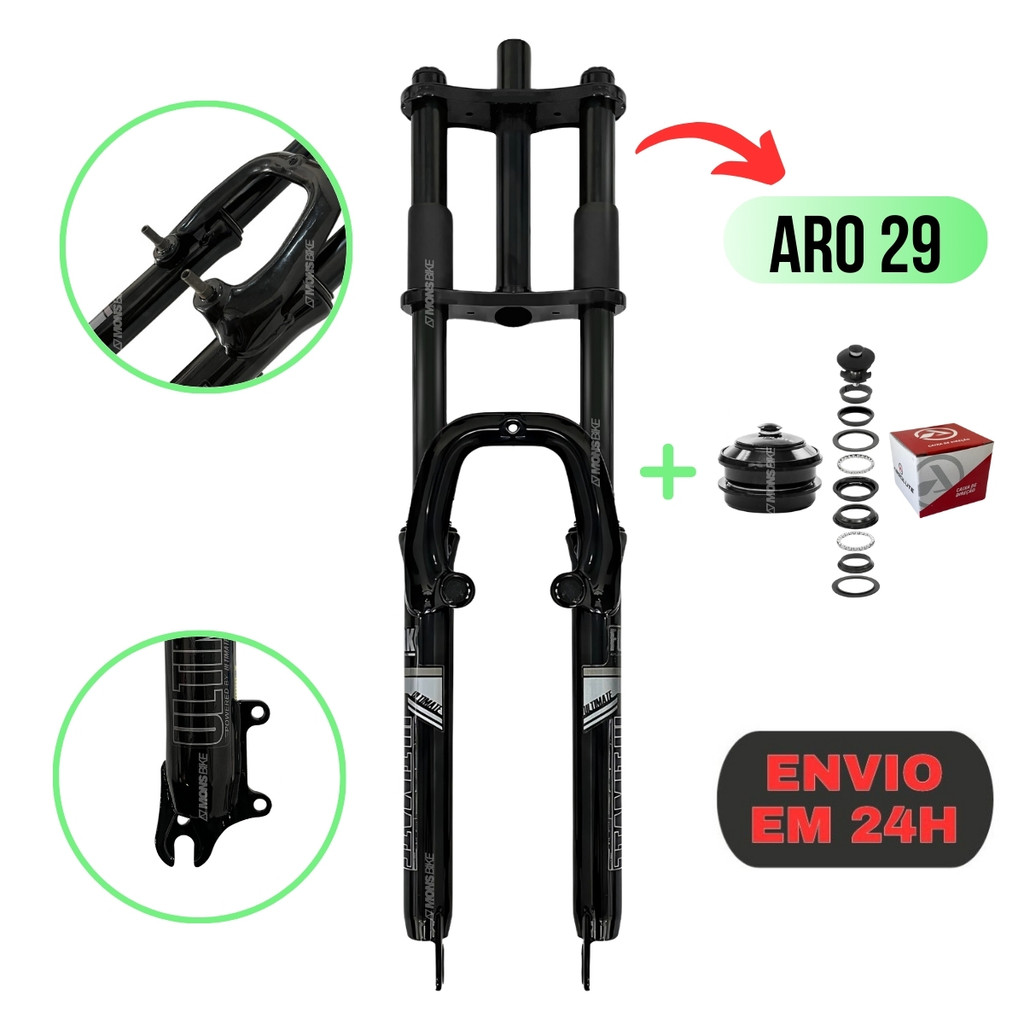 Garfo Suspensão Bike Aro 29 Amortecedor 2 Andar + Caixa De Direção Over Ahead Set