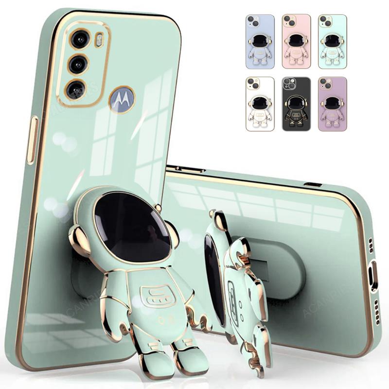 Para Motorola Moto E20 E6S2020 E7 E7PIUS E7POWER EDG E20 G30/G20/G10 G50 5G G60/G40F G8 Metalizado Astronauta Suporte Dobrável Capa De Silicone
