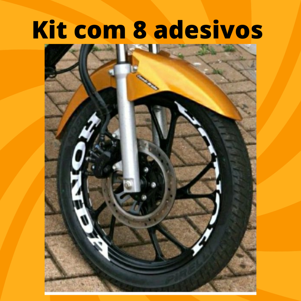 Kit 8 Adesivos Honda Escrita Aro Moto Roda Decoração