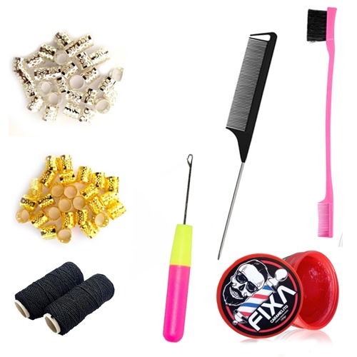 KIT TRANCISTA - AGULHA ENTRELANCE - PENTE SEPARADOR DE MECHA - POMADA - ANÉIS DE DREAD - LASTEX - ESCOVA BABY HAIR