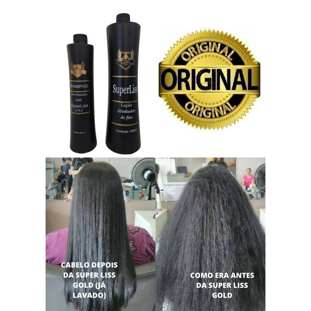 Kit Escova Progressiva Super Liss Gold - Superliss Alinhamento dos Fios Ativo 1l