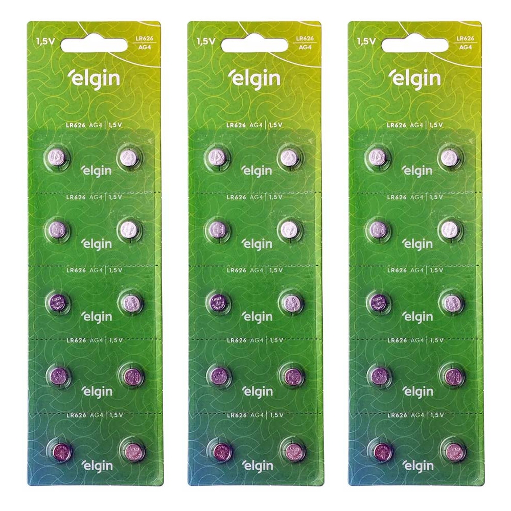 30 Bateria Elgin Lr626 Ag4 377 1.5v Botão Blister Cartela