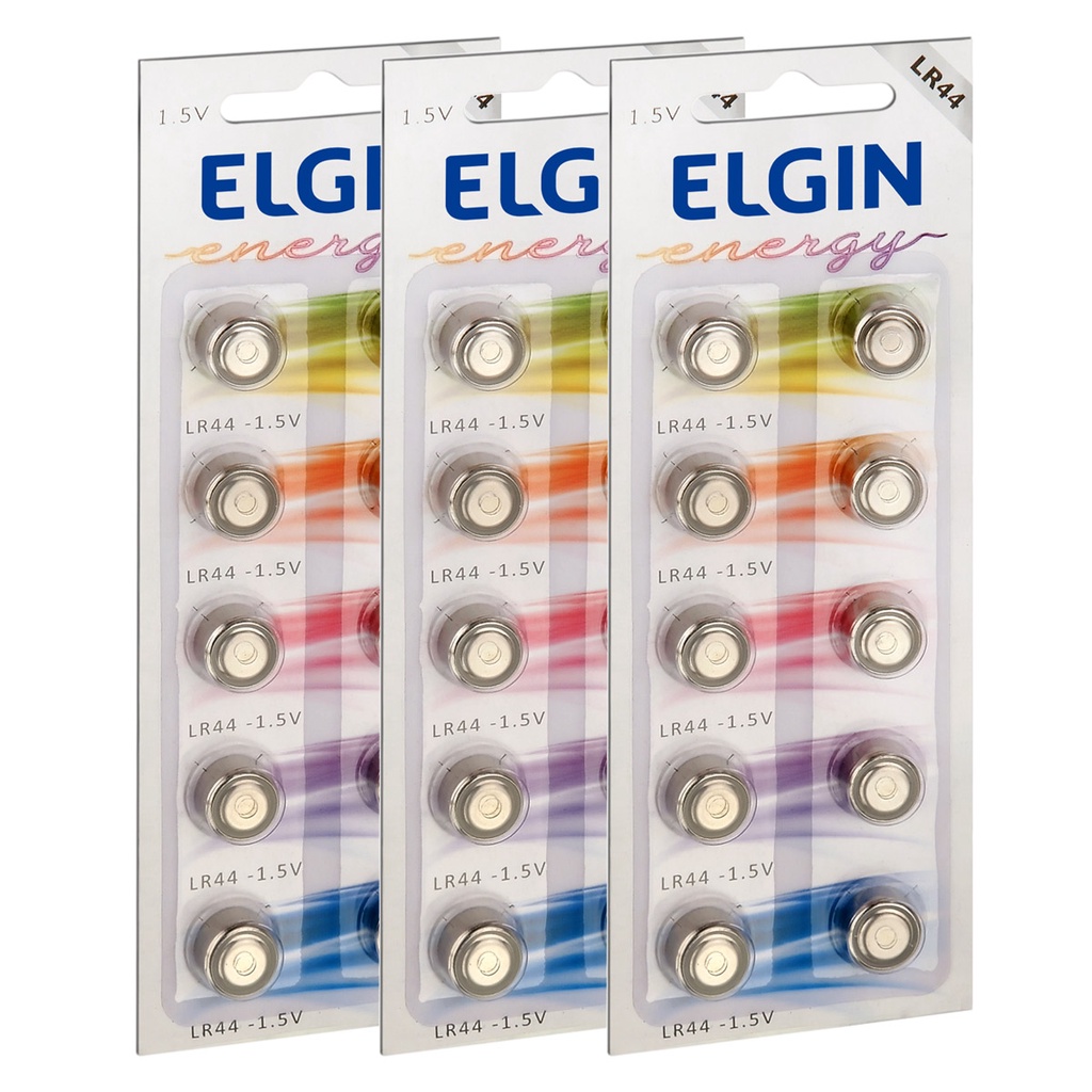 30 Pilhas Baterias LR44 Elgin A76 Ag13 Alcalina 3 Cartelas