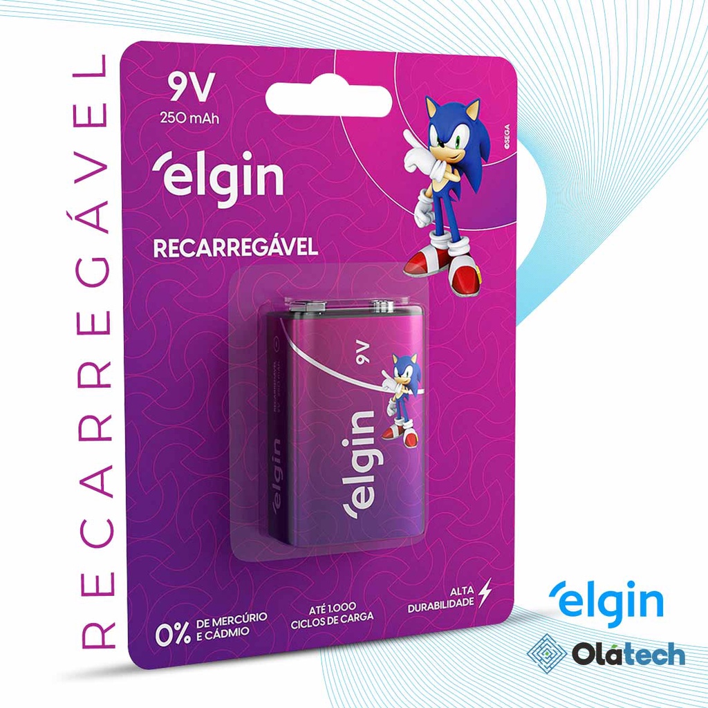 Bateria Recarregável 9V Elgin Bateria Pilha 9 Volts 250 mAh