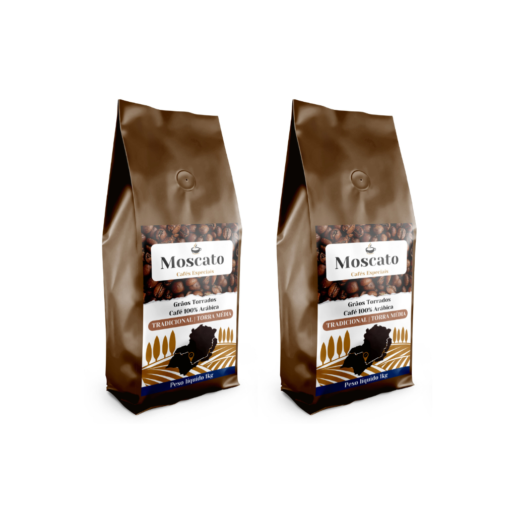 Kit 2Kg || Café em Grãos Arábica Gourmet Tradicional 1Kg e Café em Grãos Arábica Gourmet Aroma Chocolate 1Kg /TORRA MÉDIA