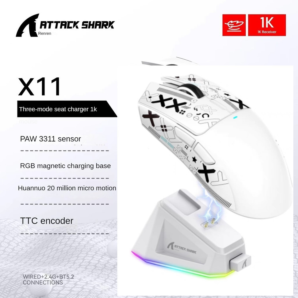 Mouse Para Jogos Sem Fio ATTACK SHARK X11 Com Base De Carregamento PixArt PAW3311 Sensor , BT/2.4G /