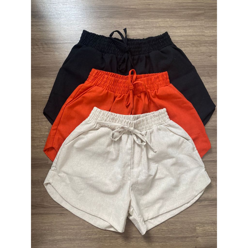 Shorts Curto Feminino de Linho Viscose com Elastano e Bolso