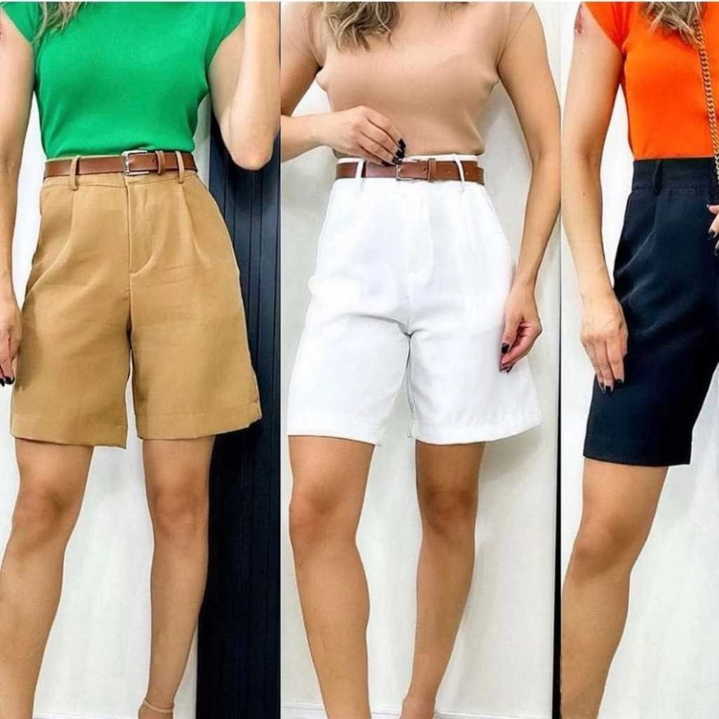 bermuda feminina alfaiataria com cinto Shorts Social linho Tendência da Moda Feminina P, M, G, GG,