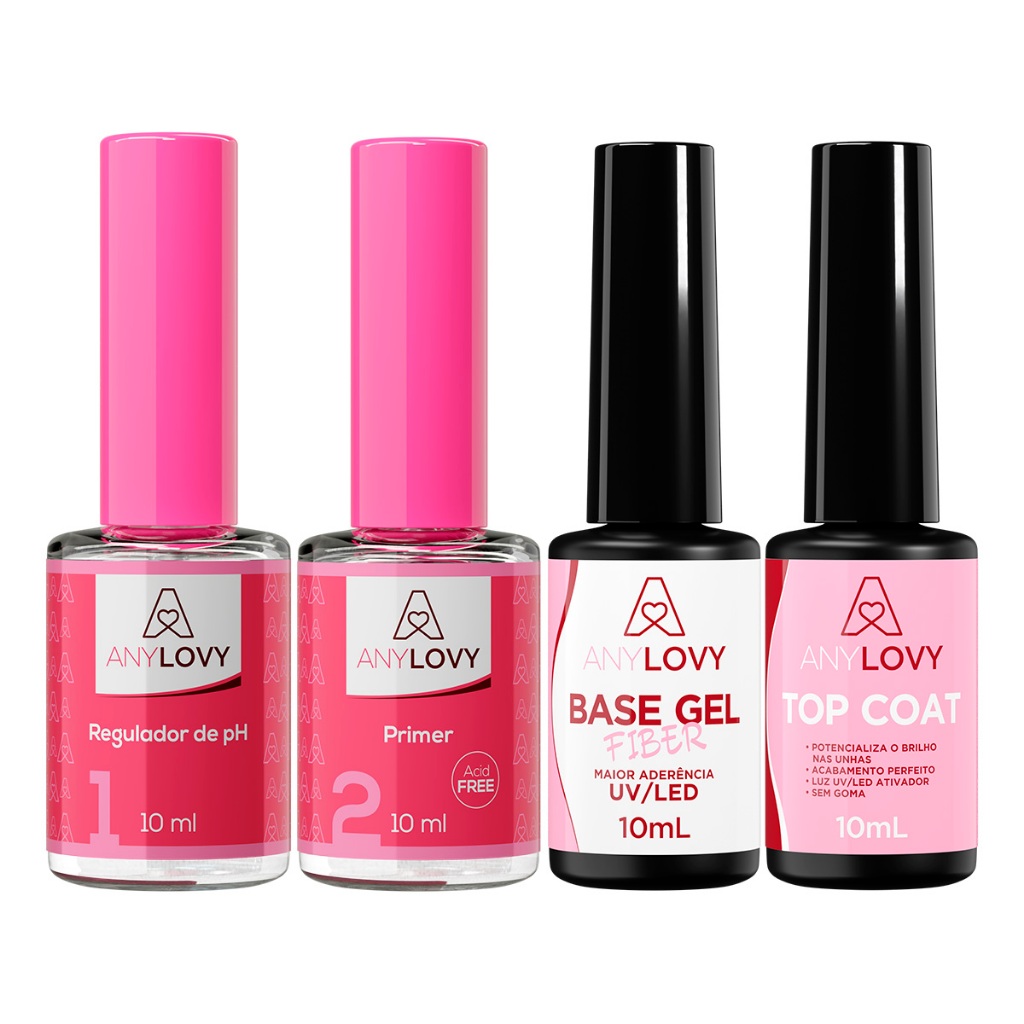 Any Lovy - Kit Preparadores Primer Sem Ácido Regulador Gel Base Fiber Top Coat