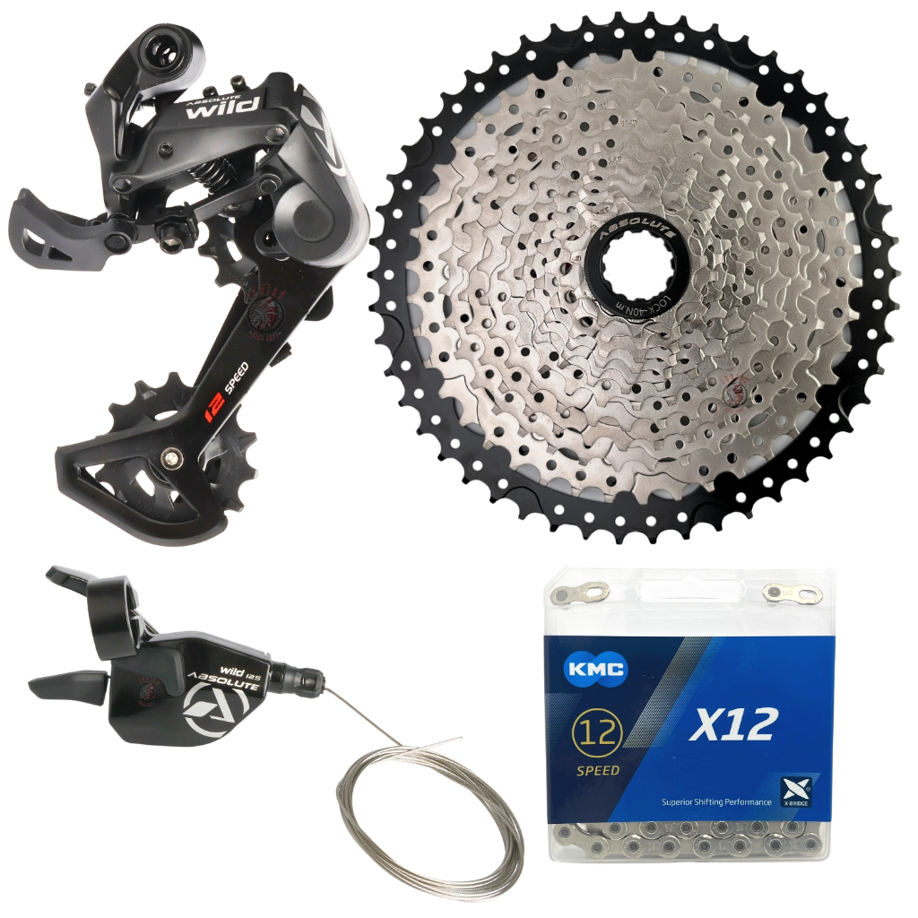 GRUPO RELAÇÃO ABSOLUTE WILD 2 12V CASSETE K7 11/50 COROA 34D CÂMBIO ALAVANCA CORRENTE KMC 1X12 MTB