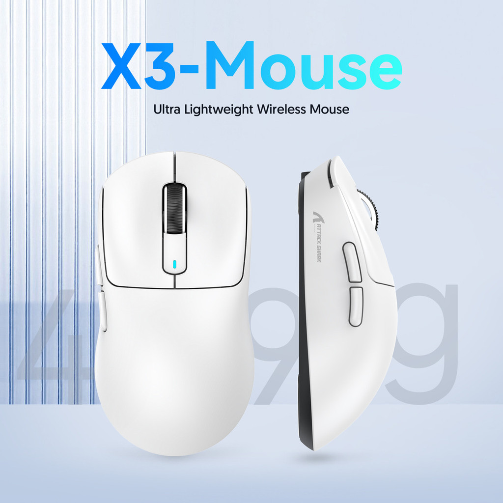 Mouse Para Jogos Sem Fio ATTACK SHARK X3 MAX 49g Ultraleve PixArt PAW3950 42000 DPI Tri-Modo (BT5.4/2.4 Ghz/USB-C 1K Tax