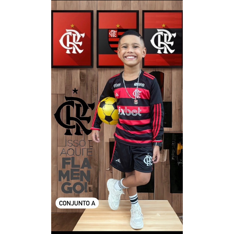 conjunto infantil e juvenil de time blusa ou regata look torcedor Flamengo (manga-longa, camisa ou regata) acompanha short.