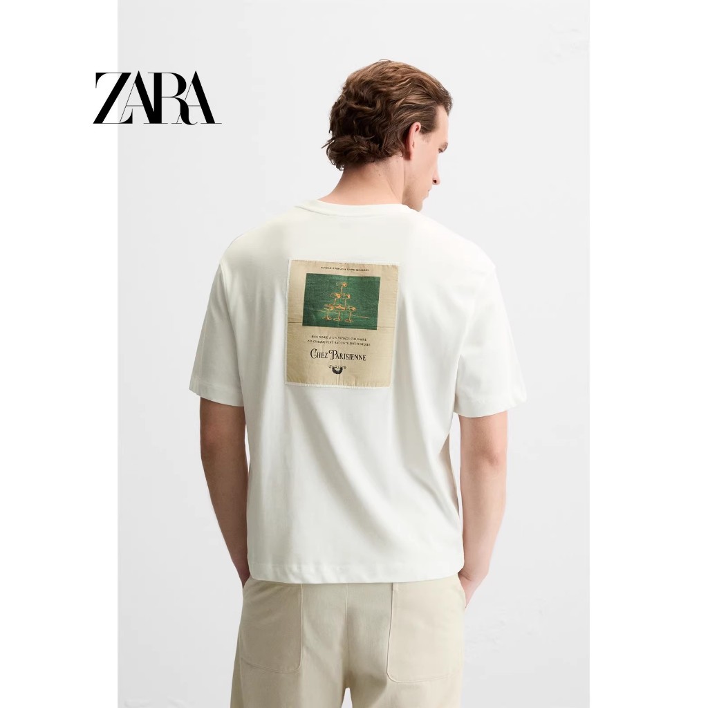 ZARA Nova Camiseta Masculina E Feminina De Algodão Branca Solta Estampada Gola Redonda De Manga Curta 0962366