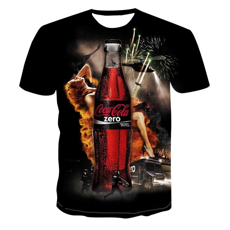 Nova Garrafa Criativa De Bebida Cola De Verão Para Homens 3d Camiseta De Manga Curta Impressa Feminina Popular Street Chic Crewneck Top