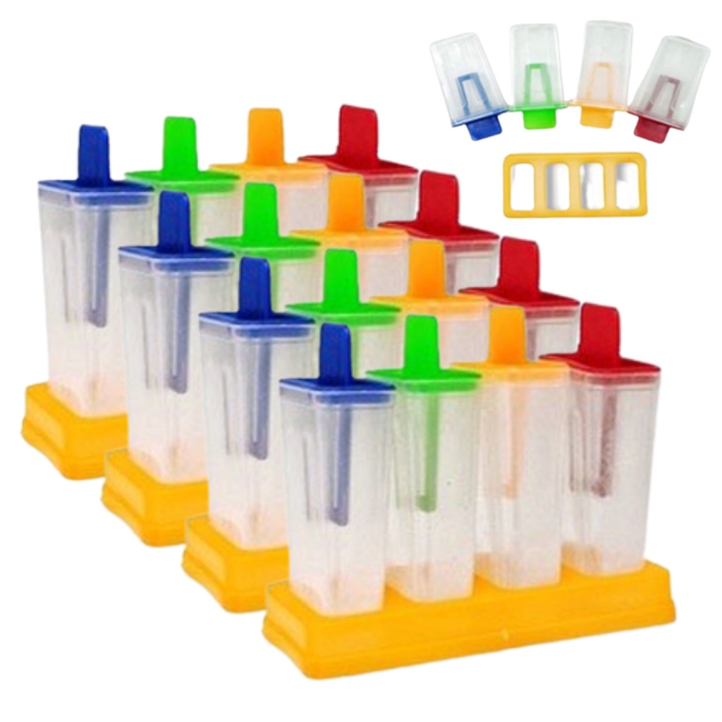 Forma De Picole Kit Com 4 Unidades 16 Potes De 50 Ml Com Cabo Bl Festo Sorvetinho Vários Sabores Para Diversão Das Crianças no Verão