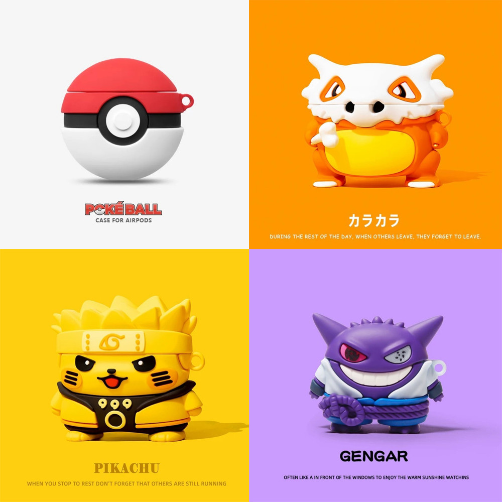 NARUTO Pokémon + Pingente AirPods Case Para Pro/Pro2 4/3/2/1 Capa De Fone De Ouvido De Silicone