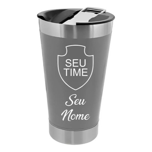 Copo Térmico Personalizado com seu Nome e Time de Futebol com Tampa e Abridor 473ml Laser Presente