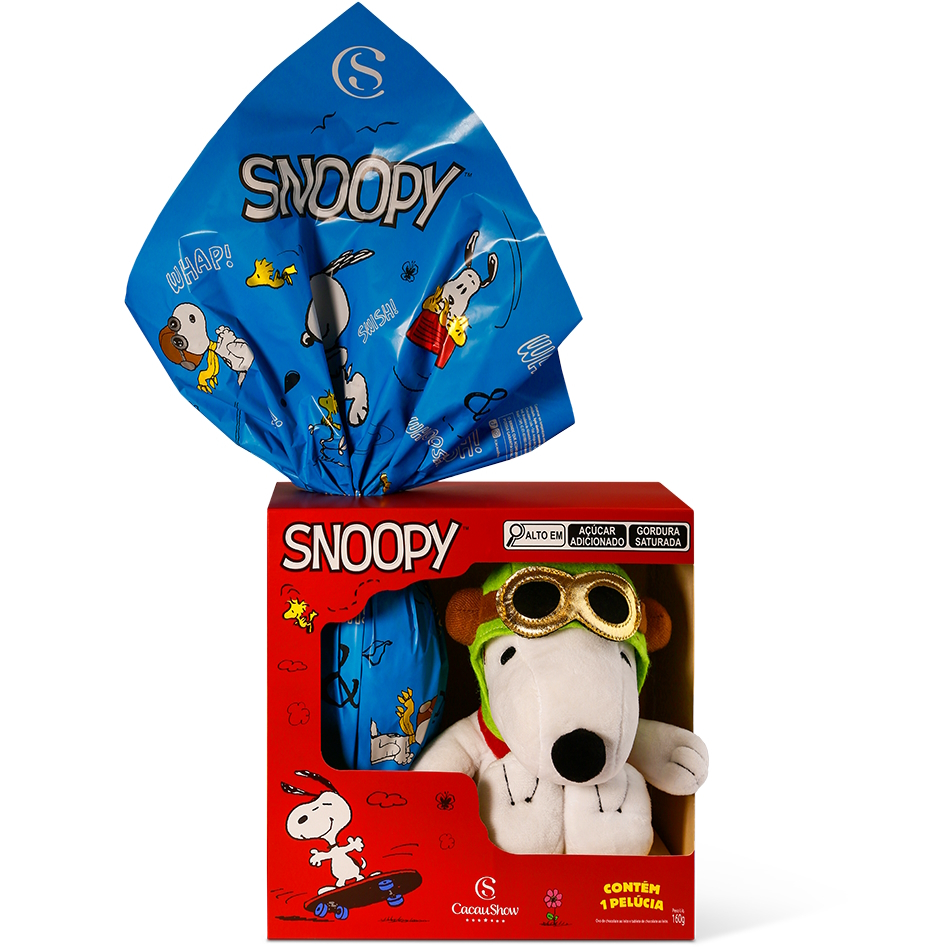 Ovo de Páscoa Snoopy Aviador Cacau Show Pelúcia Presente Infantil Chocolate ao Leite Preto Criança Boneco