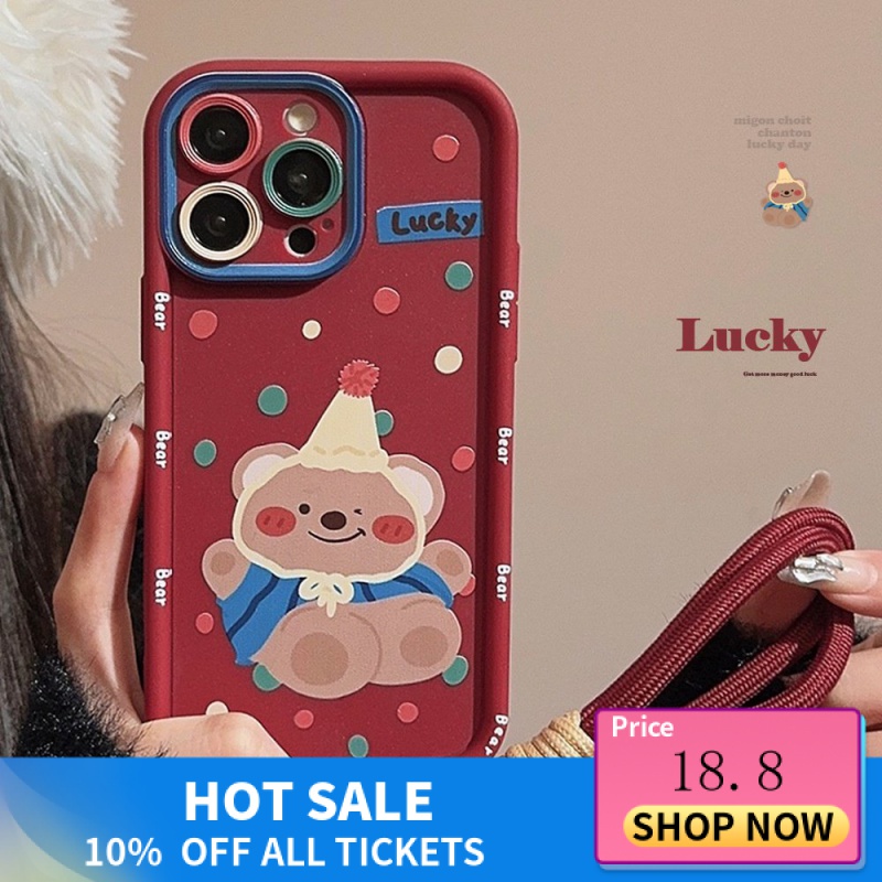 Capa de telefone 12X com pacote completo de urso de maçã/vinho tinto 13 cordão adequado 8 estilo coreano iPhone1514pro11 fosco
