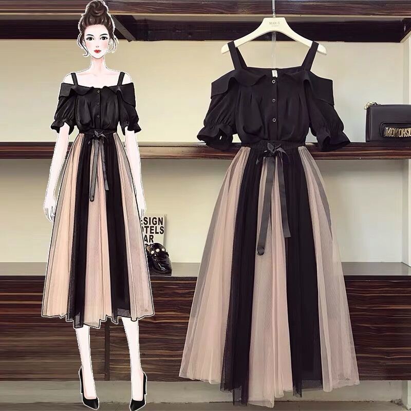 [Huhu]Uma peça / terno plus size feminino 2020 novo vestido de primavera e verão é vestido de irmã gordo terno de duas