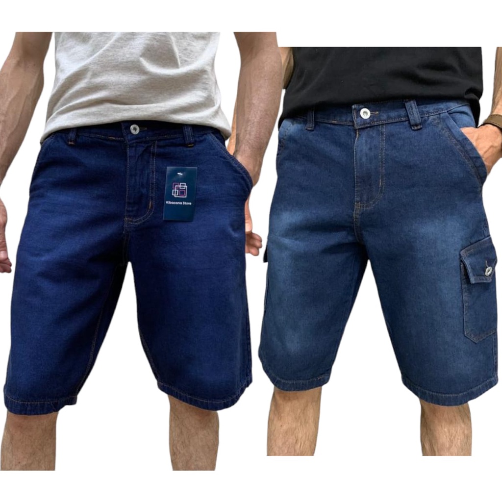 Kit 3 Bermuda Masculina Cargo Brim Sarja Jeans 6 Bolsos