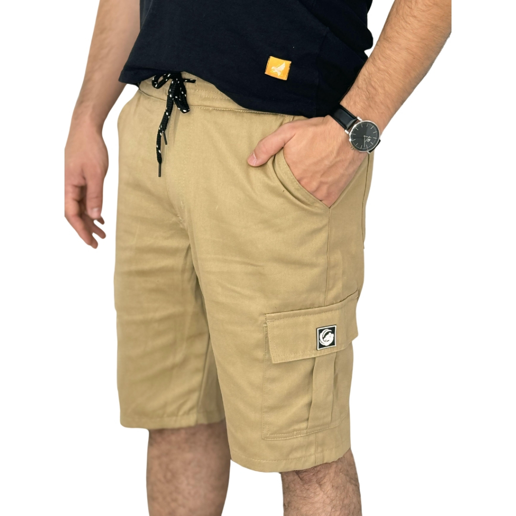 BERMUDA cargo jeans ou sarja dazzling 6 bolsos Com elástico na cintura e cordão