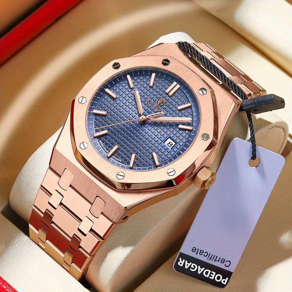 Relógio De Luxo Da Marca Poedagar Para Homens, Relógio Masculino De Negócios Em Aço Inoxidável E Quartzo, À Prova D'água, Com Luz Noturna, Data Quadrada, Relógio De Pulso Com Caixa, 1 Unidade