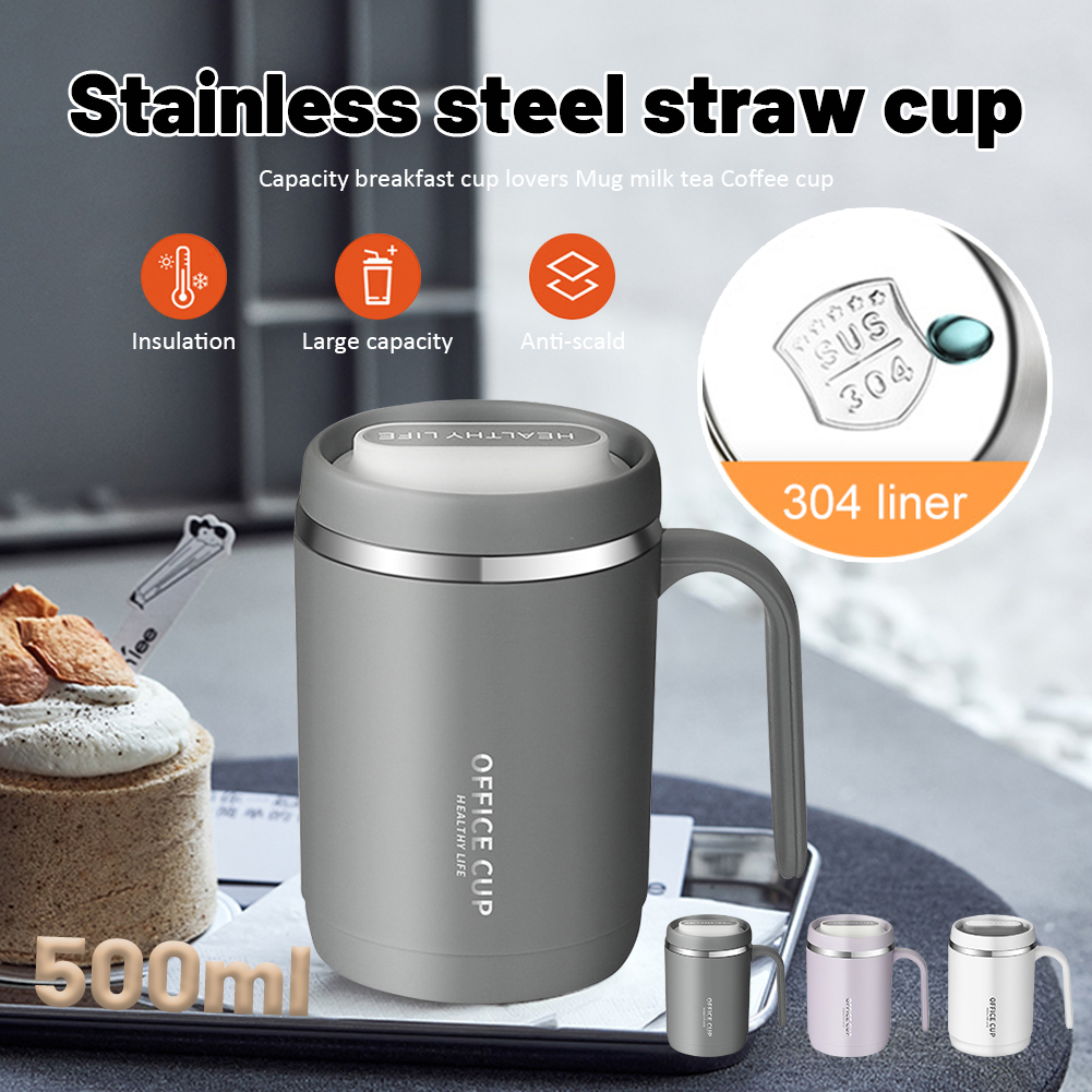 COD 500ml de Aço Inoxidável Garrafa Térmica Com Palha Copo Bebendo Café Da Manhã Caneca De Café Isolado Xícara de Água