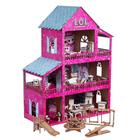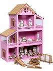 Casinha de Boneca 60cm com Moveis MDF Brinquedo Casa Bonecas Pequena Enfeite e Brincadeira Kids Material Pintado