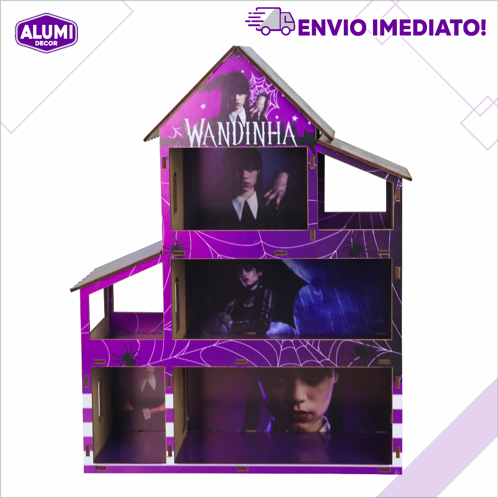 Casa Casinha de boneca MDF 2.8MM Adesivada - MONTADA - ROXA WANDINHA